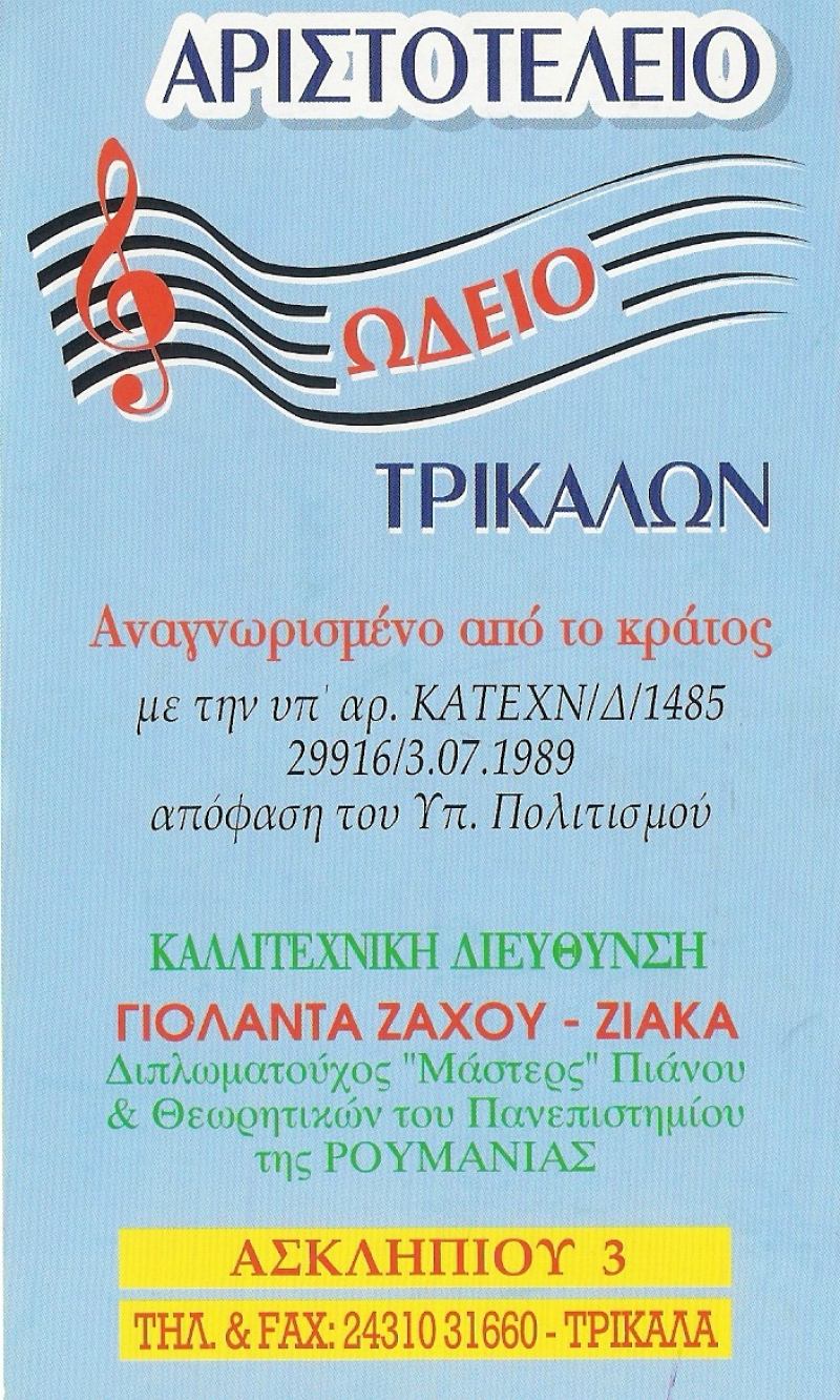 ΑΡΙΣΤΟΤΕΛΕΙΟ ΩΔΕΙΟ ΤΡΙΚΑΛΩΝ